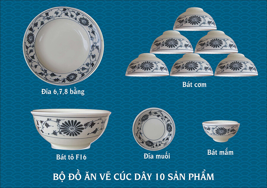 Hãy là người đầu tiên nhận xét “Bộ đồ ăn vẽ hoa cúc dây”